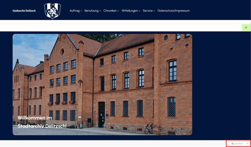 Es besteht die Möglichkeit, direkt über WordPress.com dem Stadtarchiv Delitzsch zu folgen. Hierzu kann eine Registrierung bei WordPress.com das spätere Abonnieren erleichtern.